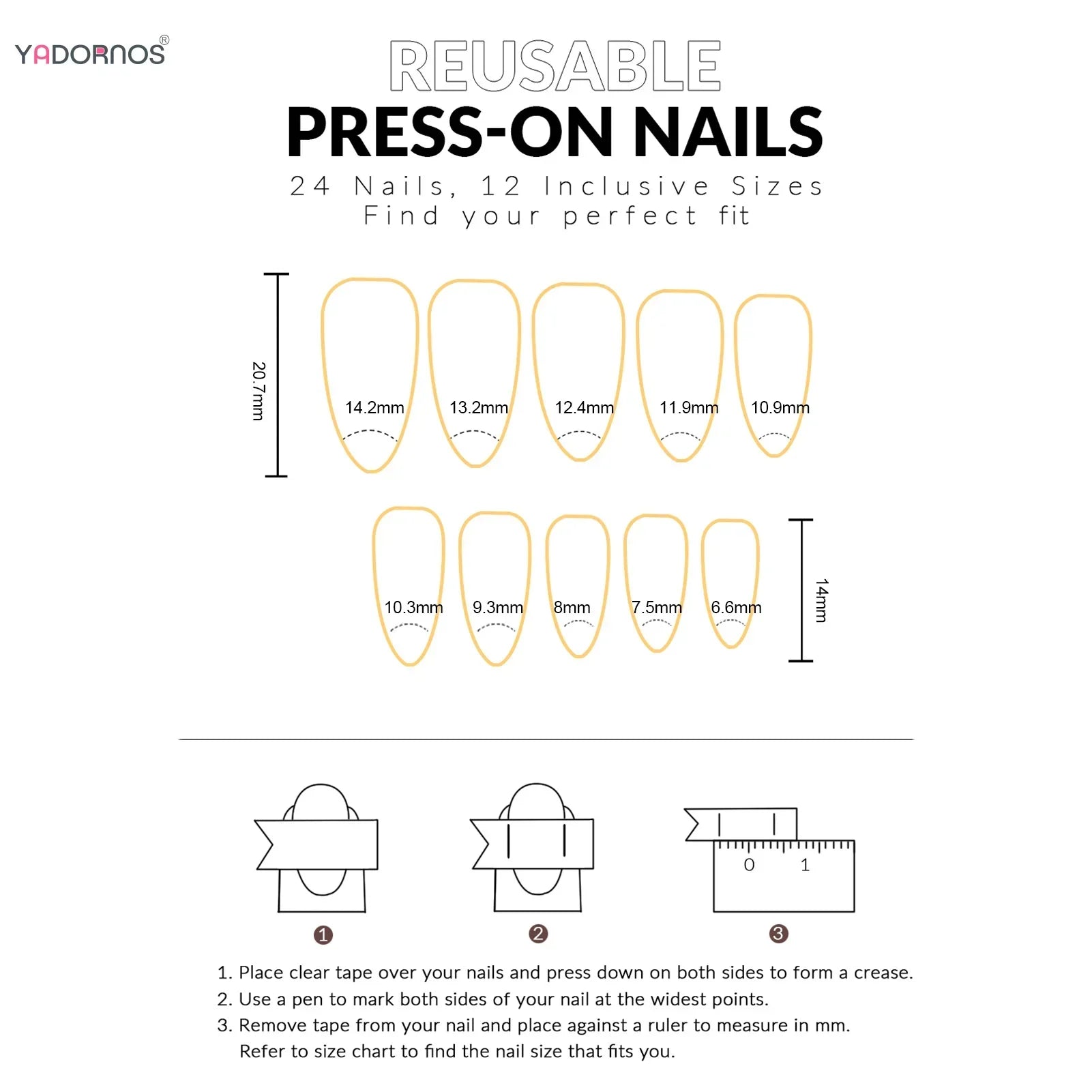 This 24-piece sweet press-on nail set is perfect for achieving salon-quality nails at home. With a variety of designs, you can customize your look to fit any occasion. Made with high-quality materials, these press-on nails are durable and long-lasting. Make a statement with the convenience of press-on nails.