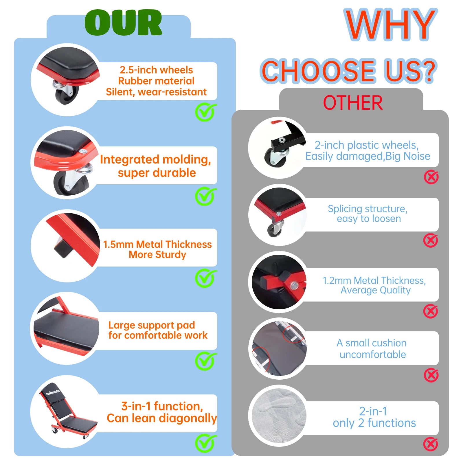 3-in-1 Rolling Mechanic Creeper