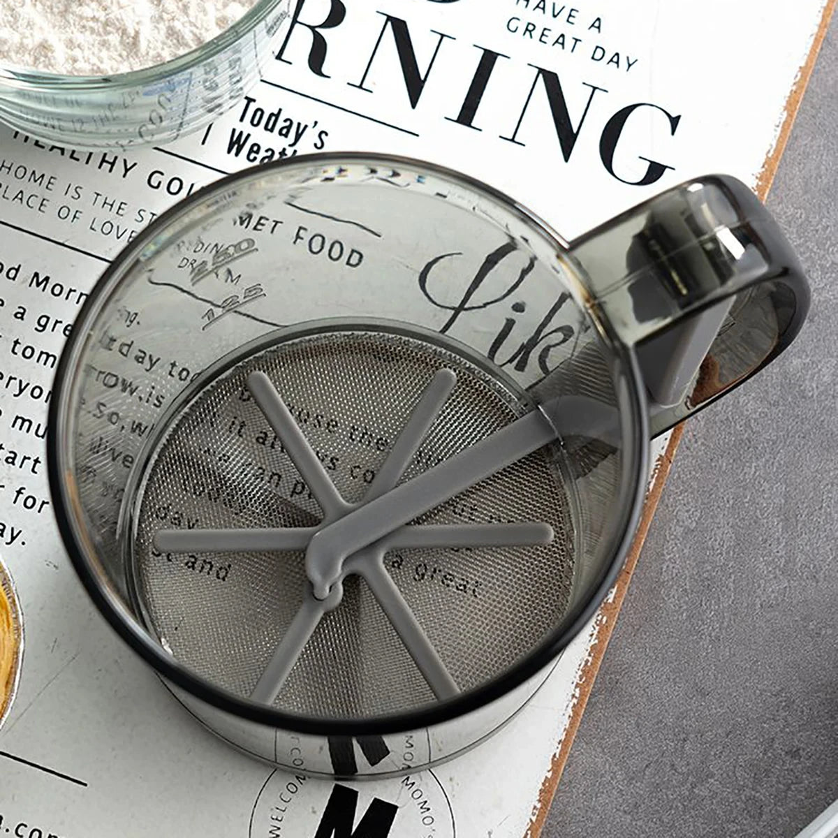 The 40 Mesh Kitchen Flour Sieve is designed for precise sifting, ensuring fine, clump-free flour for baking and cooking. Its 40 mesh screen effectively filters out impurities and lumps, improving texture and consistency in your recipes. Crafted for durability and ease of use, this sieve is an essential tool for any kitchen aiming for professional-quality results.