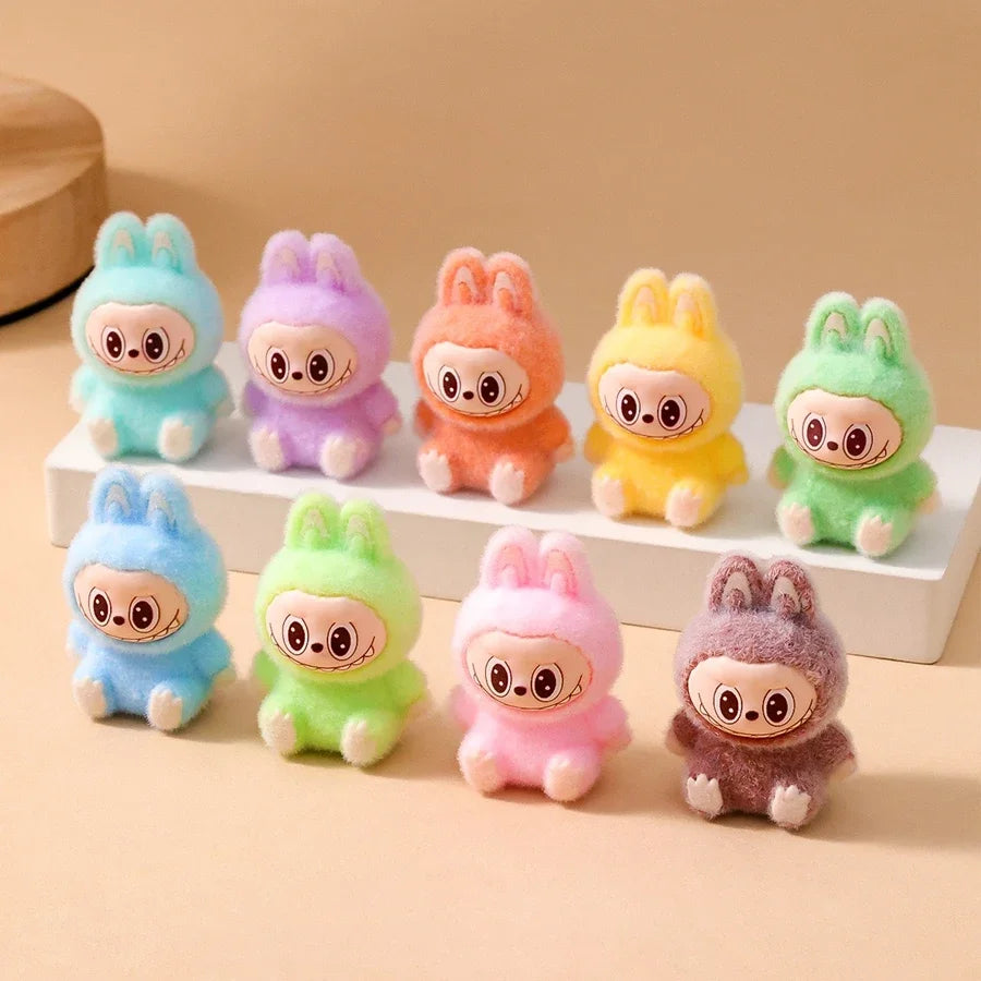 9PCS Labubu Cartoon Mini Flocking Doll Keychain