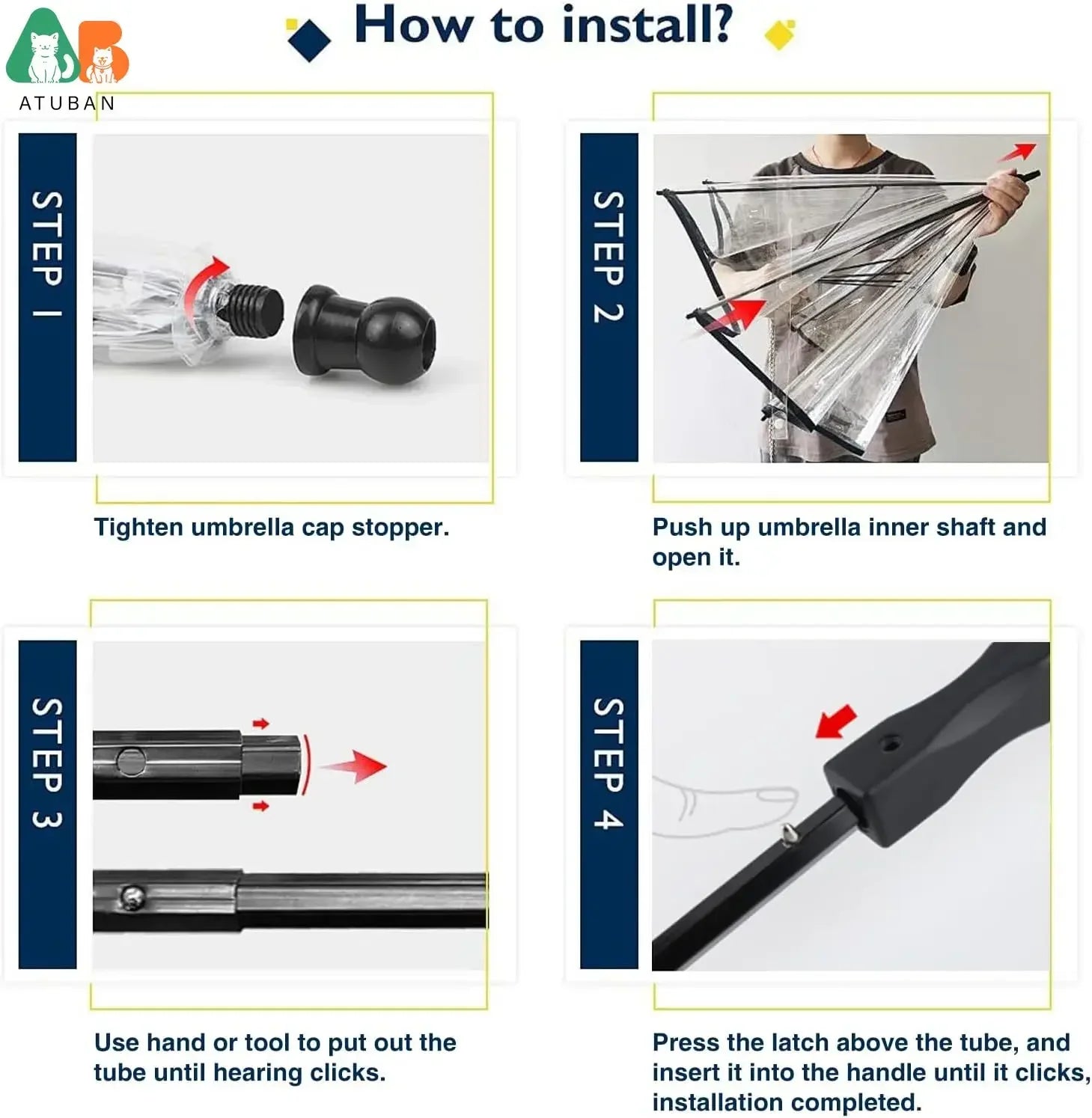 The ATUBAN Clear Dog Umbrella offers reliable protection for your pet during rainy walks. Its transparent canopy ensures clear visibility while shielding your dog from rain and wind. Designed for comfort and ease of use, this umbrella helps keep your dog dry without restricting movement, making outdoor activities more enjoyable regardless of the weather.