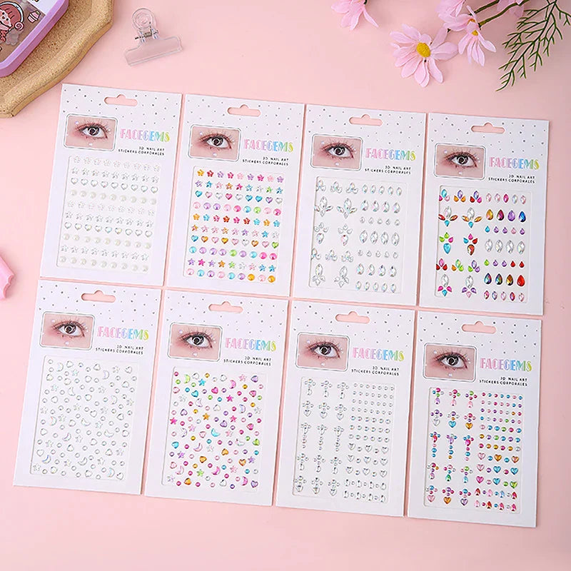 Diamond Face & Body Gems add instant glamour to any look. These premium adhesive crystals create eye-catching sparkle for festivals, parties, or special occasions. Designed to adhere securely to skin while remaining comfortable throughout wear. Each gem catches and reflects light beautifully, elevating your makeup artistry with professional-quality embellishment.