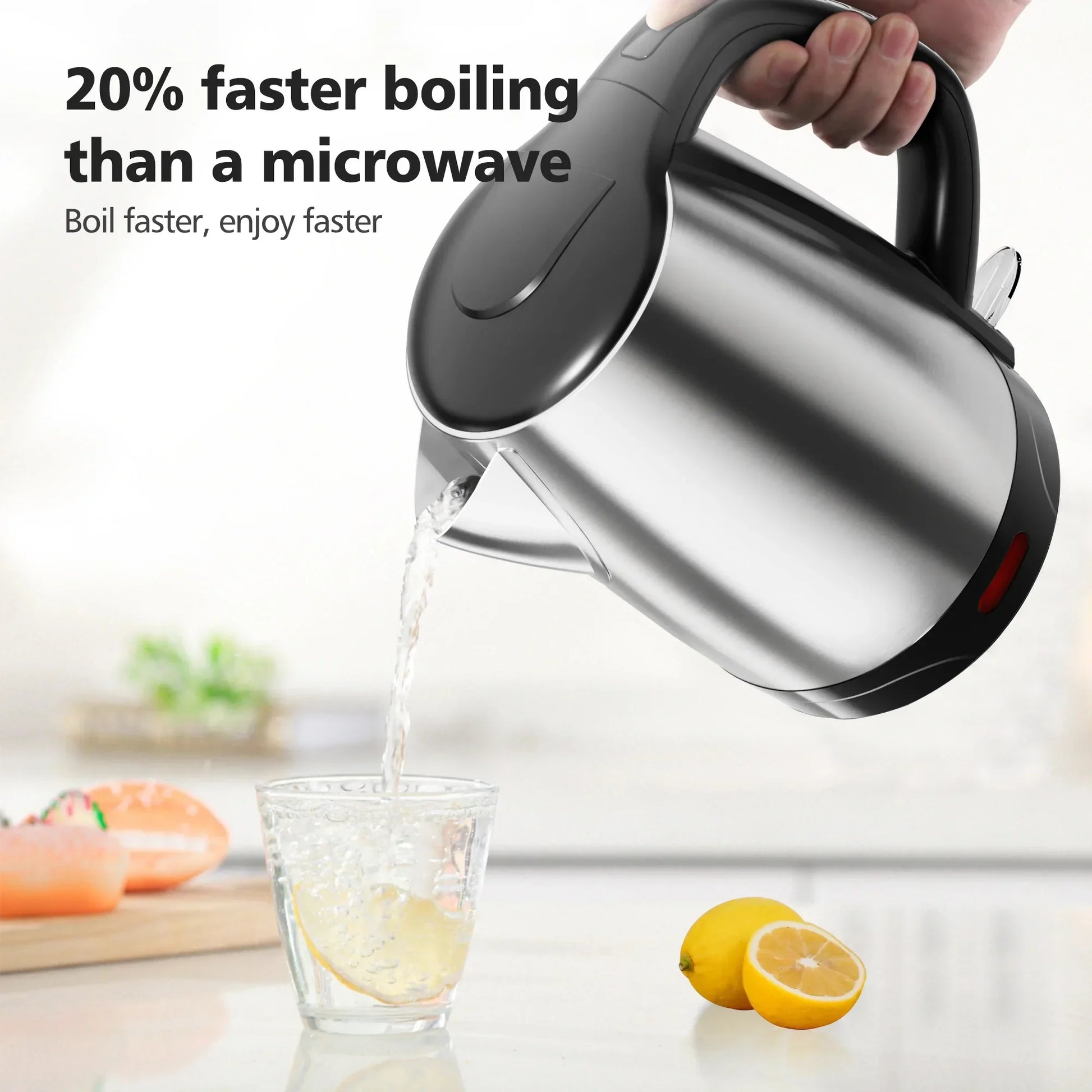 This 1.7L electric tea kettle features durable stainless steel construction for long-lasting performance and easy maintenance. Its rapid boiling capability ensures you can prepare your tea or hot beverages quickly and efficiently. Designed with safety in mind, it includes automatic shut-off and boil-dry protection. The sleek, modern design complements any kitchen while providing reliable, expert-level functionality for everyday use.