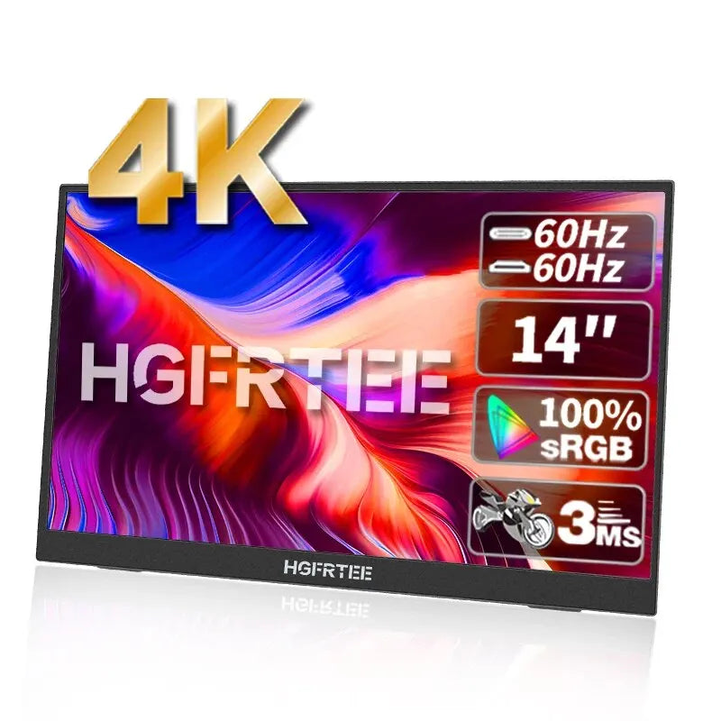 The HGFRTEE 14" 4K Monitor delivers stunning ultra-high-definition resolution in a compact, portable design. Ideal for professionals requiring detailed visuals on the go, its 4K clarity enhances precision in graphic design, video editing, and technical work. This monitor offers sharp image quality and vibrant colors, ensuring accurate and immersive viewing. Its 14-inch size balances portability with ample workspace, making it a practical companion for demanding tasks wherever you need it.