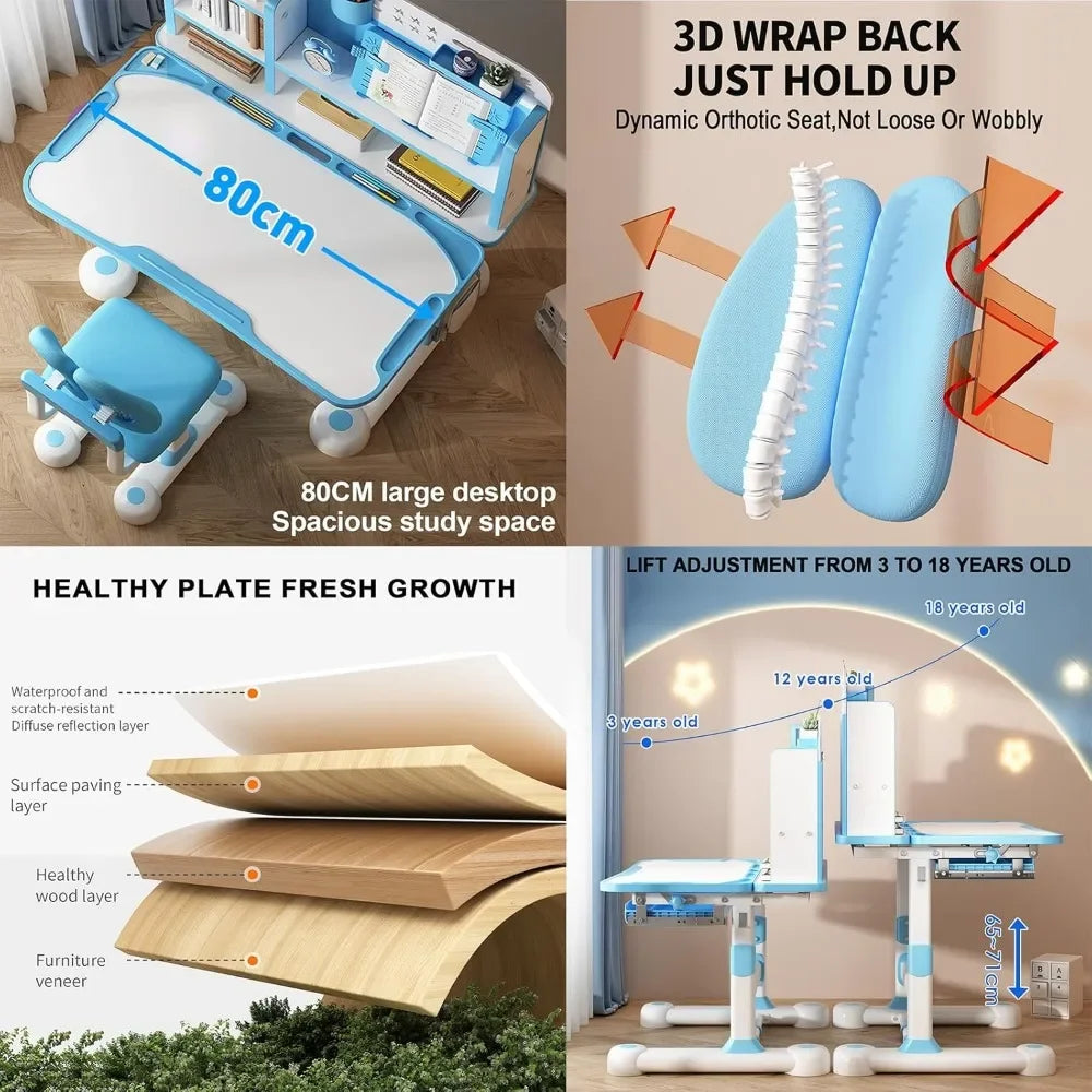 This Kids Adjustable Study Desk Set is designed to support your child's learning environment with ergonomic flexibility. Its adjustable height allows the desk to grow with your child, promoting proper posture and comfort during study time. Crafted for durability and ease of use, this set creates an organized workspace that encourages focus and productivity in young learners.