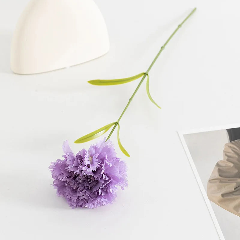 Meticulously crafted large white silk carnation with exceptional attention to detail, providing the timeless elegance of natural carnations without maintenance requirements. Each petal features precise veining and texture, creating a botanically accurate representation ideal for permanent floral arrangements, wedding décor, or sophisticated home styling.