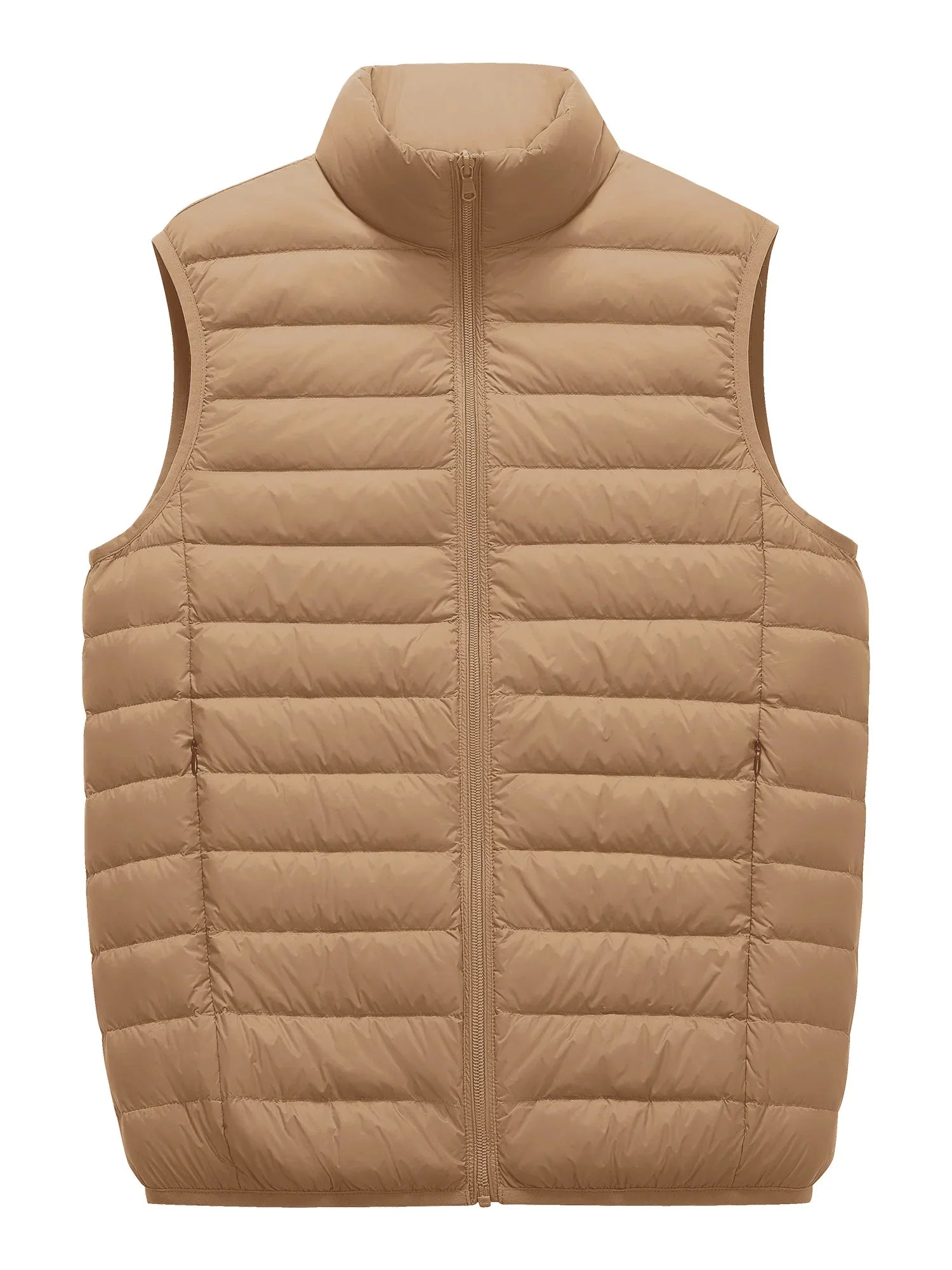 This men’s sleeveless warm down vest offers superior insulation while allowing full mobility. Crafted with high-quality down fill, it effectively retains heat, making it ideal for layering in cold weather. The sleeveless design ensures ease of movement without sacrificing warmth, perfect for outdoor activities or casual wear during chilly days. Its lightweight construction adds comfort without bulk, making it a versatile addition to any winter wardrobe.