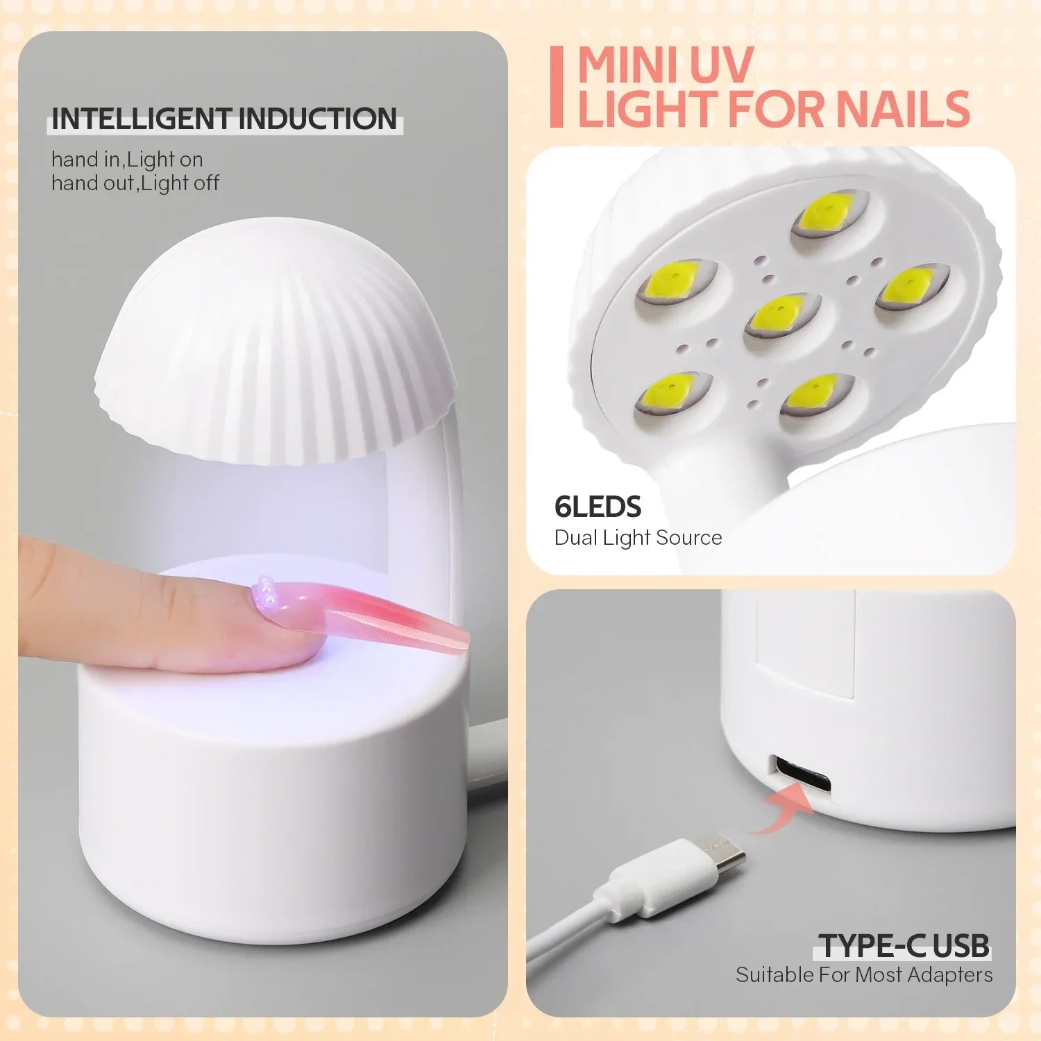Compact and efficient, this Mini Portable UV Nail Lamp delivers professional-grade curing for gel polishes on the go. Its lightweight design fits easily in purses or travel bags while providing the precise wavelength needed for proper nail curing. Perfect for touch-ups, travel, or limited space environments where full-sized lamps aren't practical.