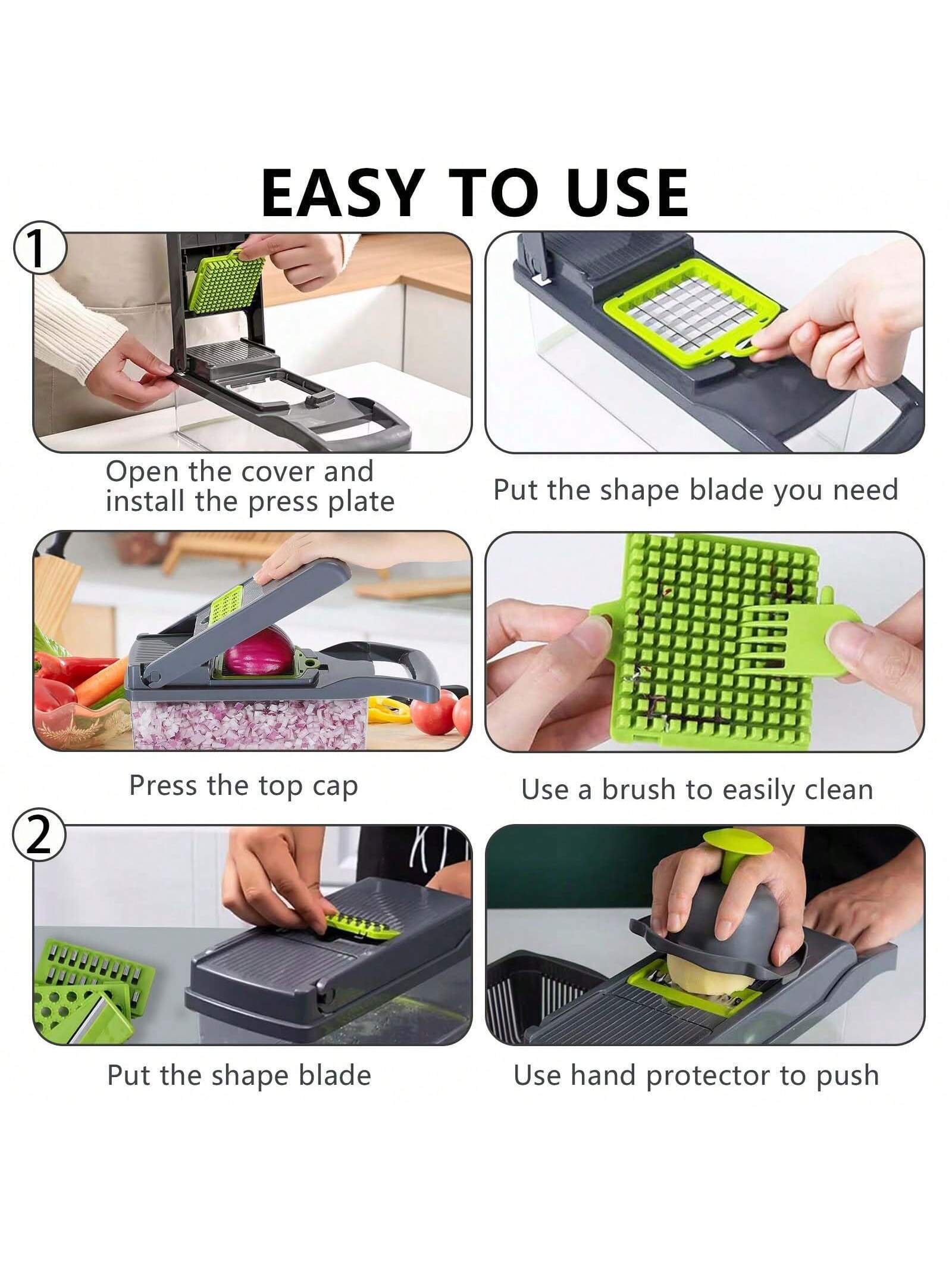 The Multifunctional Vegetable Chopper Set offers a versatile solution for efficient food preparation. Designed to handle a variety of vegetables with ease, this set streamlines chopping, slicing, and dicing tasks, saving time and effort in the kitchen. Its durable construction ensures long-lasting performance, while interchangeable blades provide precision and consistency. Ideal for both professional chefs and home cooks, this chopper set enhances productivity and promotes healthier cooking by simplifying vegetable preparation.