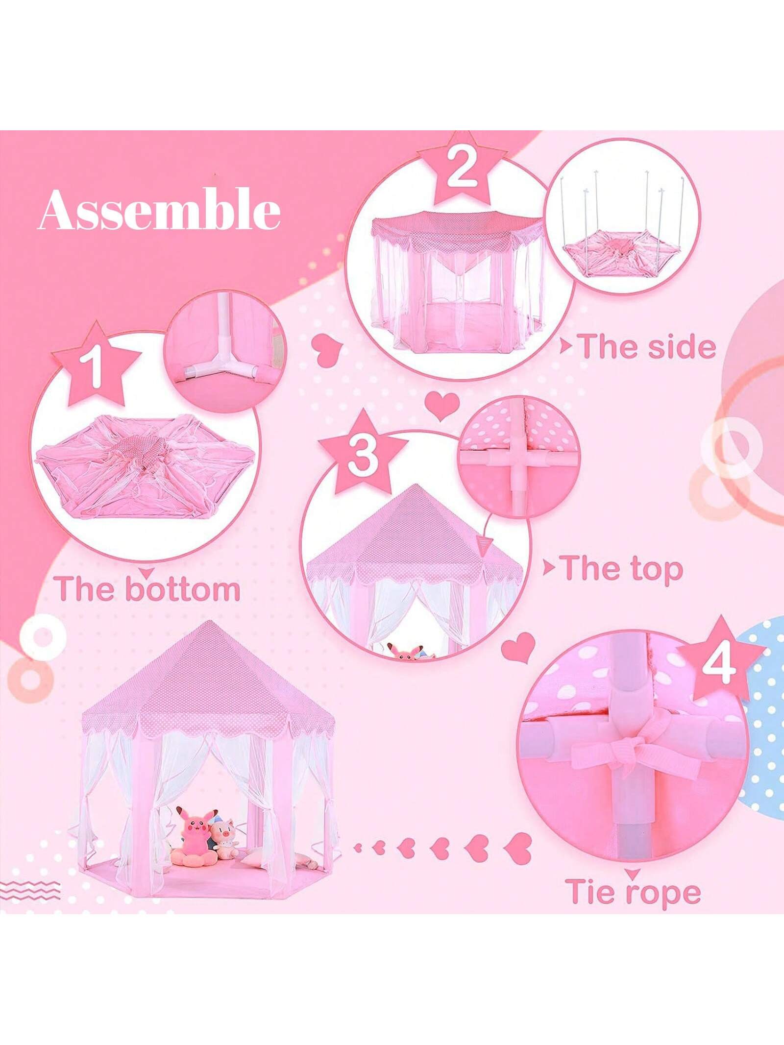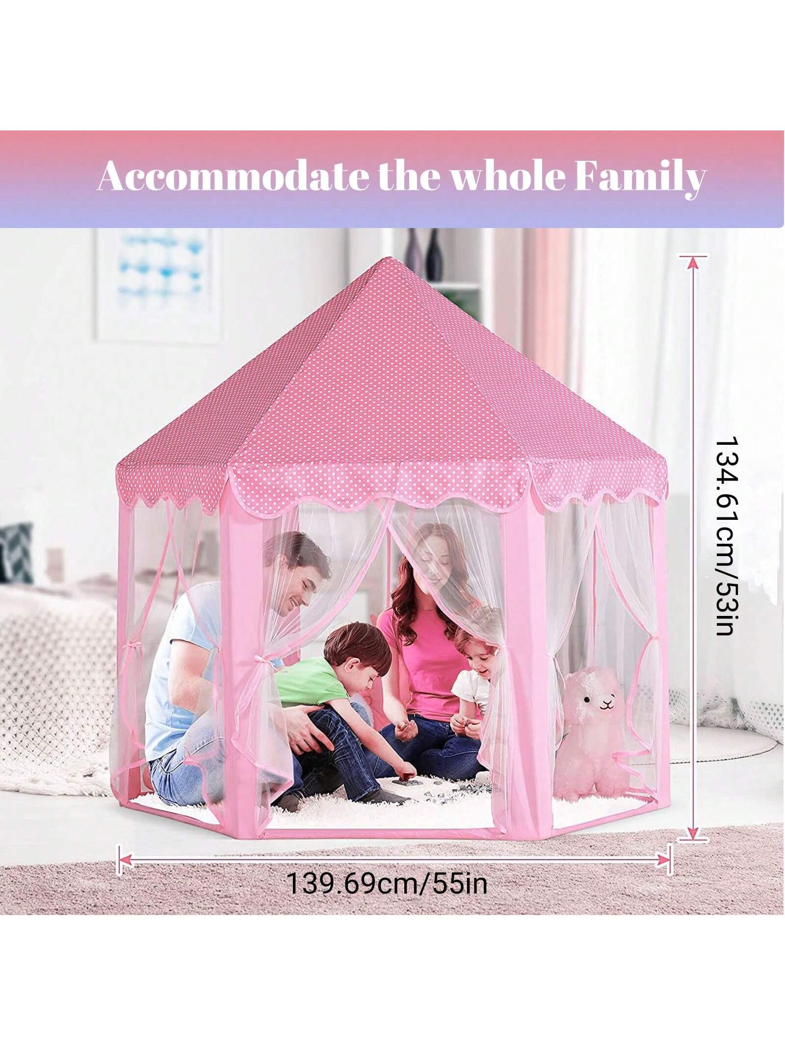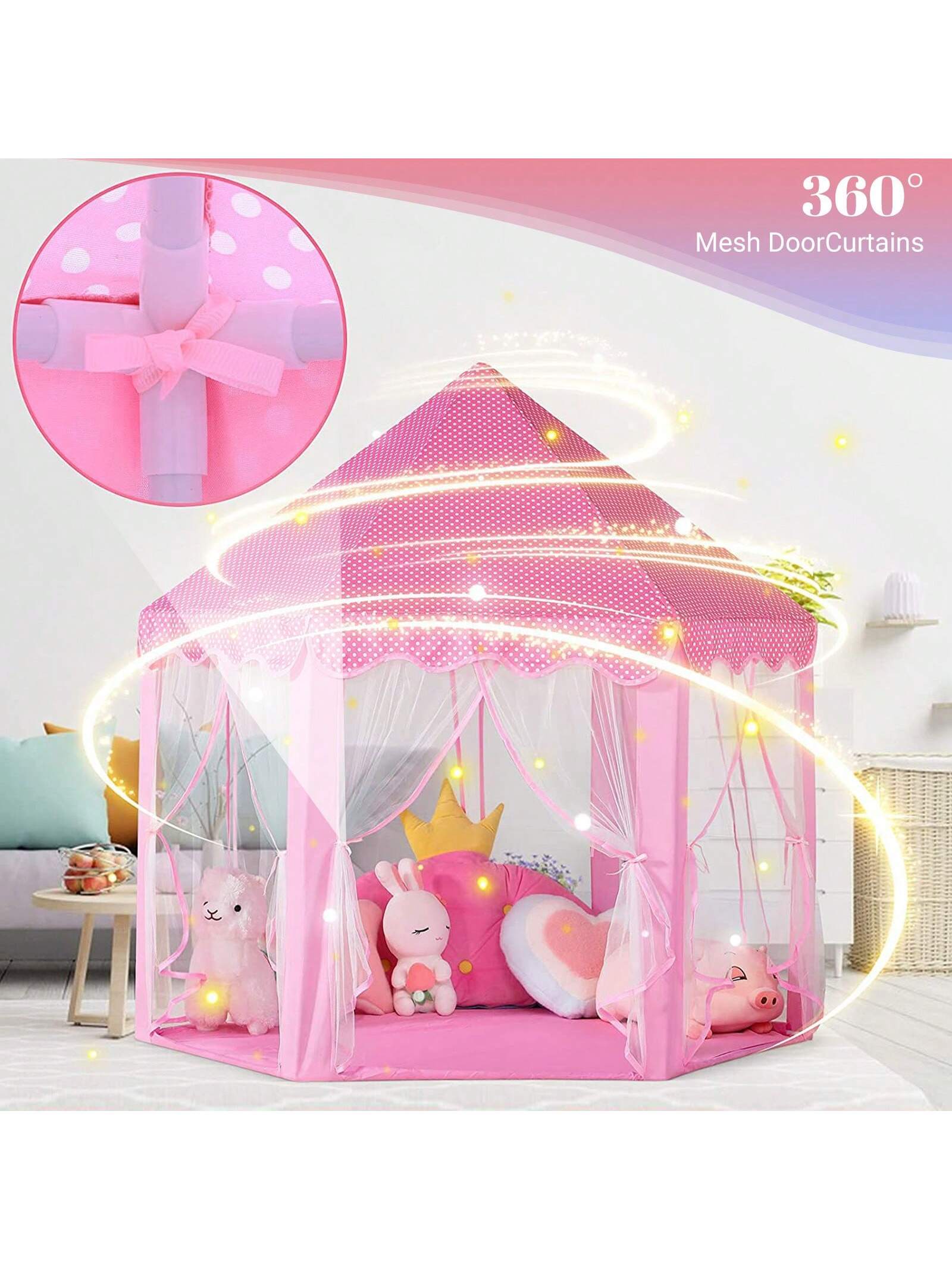 Pink Princess Tent For Kids, Kids Tent With LED Lights, Dream Castle Tent For Toddler Play