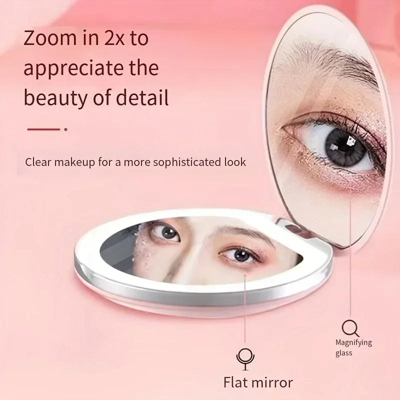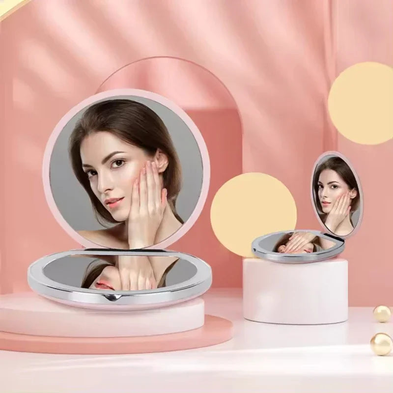 Experience perfect illumination and convenience with our Portable LED Folding Travel Mirror. Featuring a foldable design and LED lights, this mirror provides optimal lighting for flawless makeup application anywhere. Enjoy 100% distortion-free reflection with the compact yet spacious design. Perfect for beauty enthusiasts and travelers alike.
