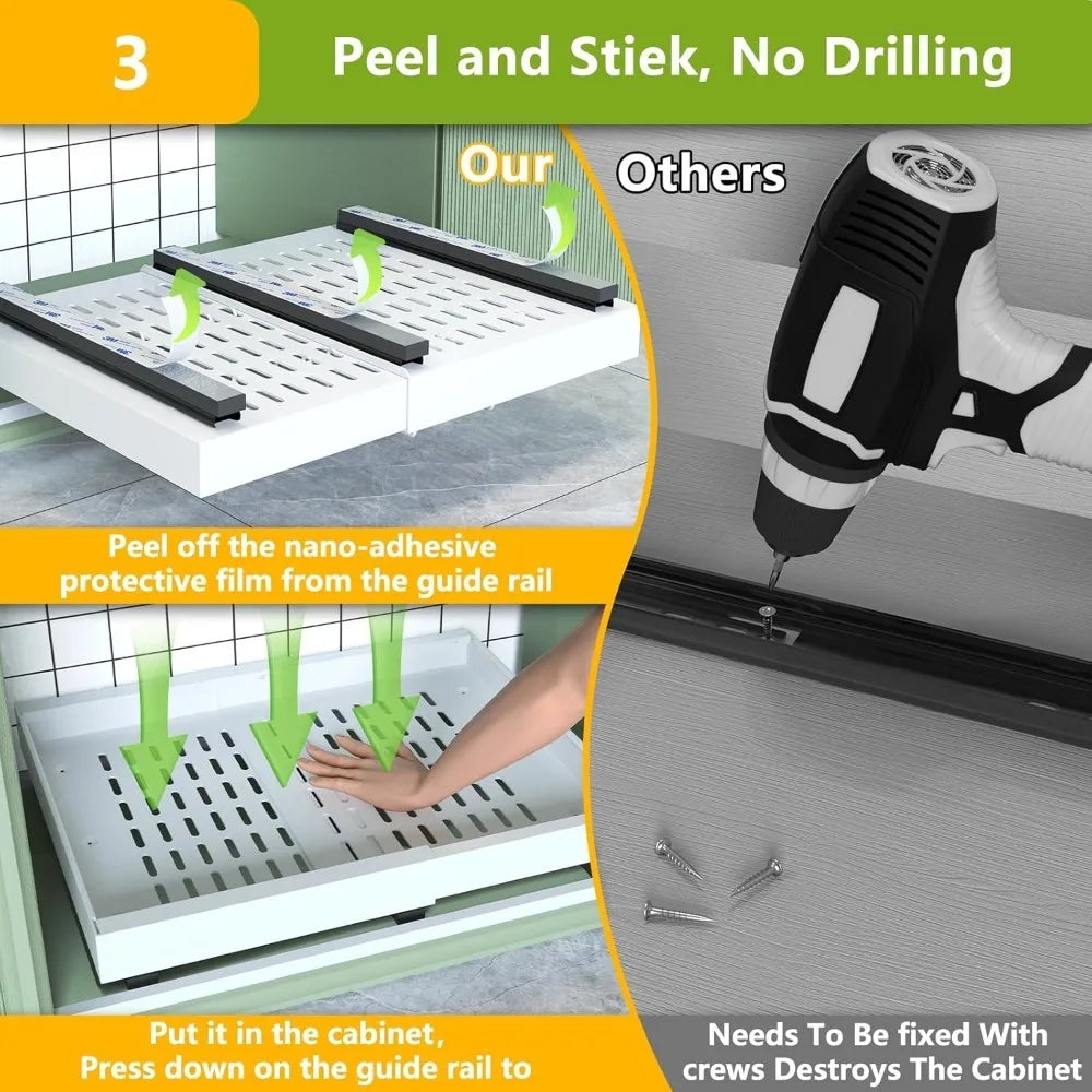 The Pull Out Cabinet Organizer Set is designed to maximize your kitchen storage by providing easy access to items stored in deep or narrow cabinets. Its smooth sliding mechanism ensures effortless reach, reducing clutter and keeping your space organized. Crafted for durability and versatility, this set enhances functionality while maintaining a clean, streamlined look in your kitchen. Ideal for optimizing both small and large cabinets, it allows you to efficiently store and retrieve kitchen essentials.