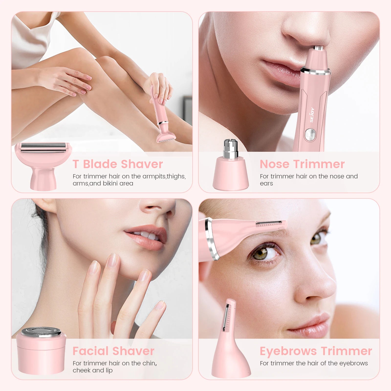 The Sejoy 4-in-1 Lady Shaver offers versatile grooming with four interchangeable heads designed for shaving, trimming, exfoliating, and precision detailing. Its ergonomic design ensures comfortable handling, while the hypoallergenic blades provide a smooth, irritation-free finish. Ideal for all skin types, this shaver delivers a thorough and gentle grooming experience, making it a reliable choice for efficient personal care.