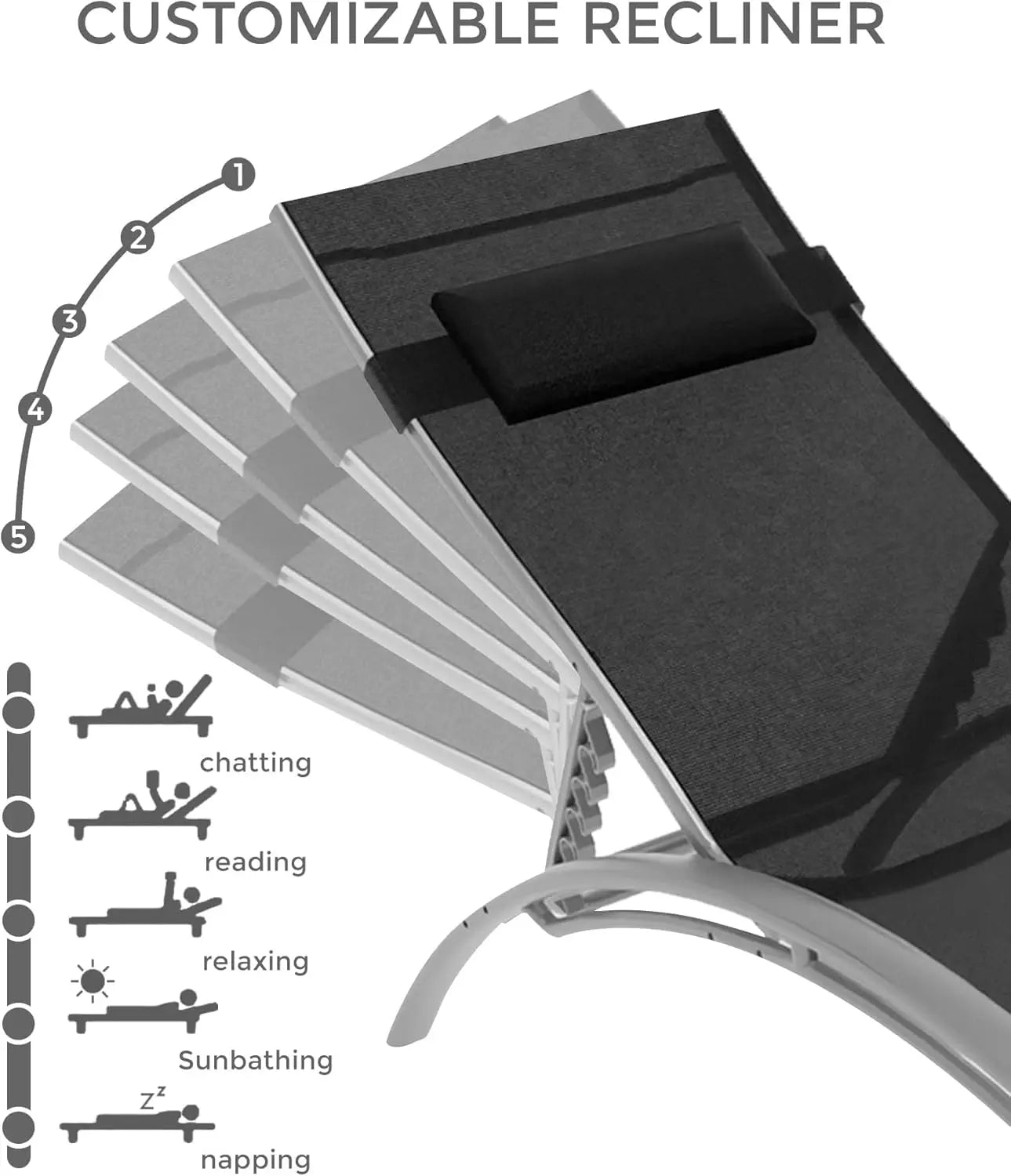 Enhance your outdoor living space with this set of 2 outdoor chaise lounges, designed for both comfort and durability. Crafted to withstand various weather conditions, these lounges provide ergonomic support for extended relaxation. Their sleek design complements any patio or poolside setting, offering a stylish yet functional seating option for enjoying fresh air and sunshine. Perfect for unwinding or entertaining, this set combines quality materials with expert craftsmanship to elevate your outdoor experience.