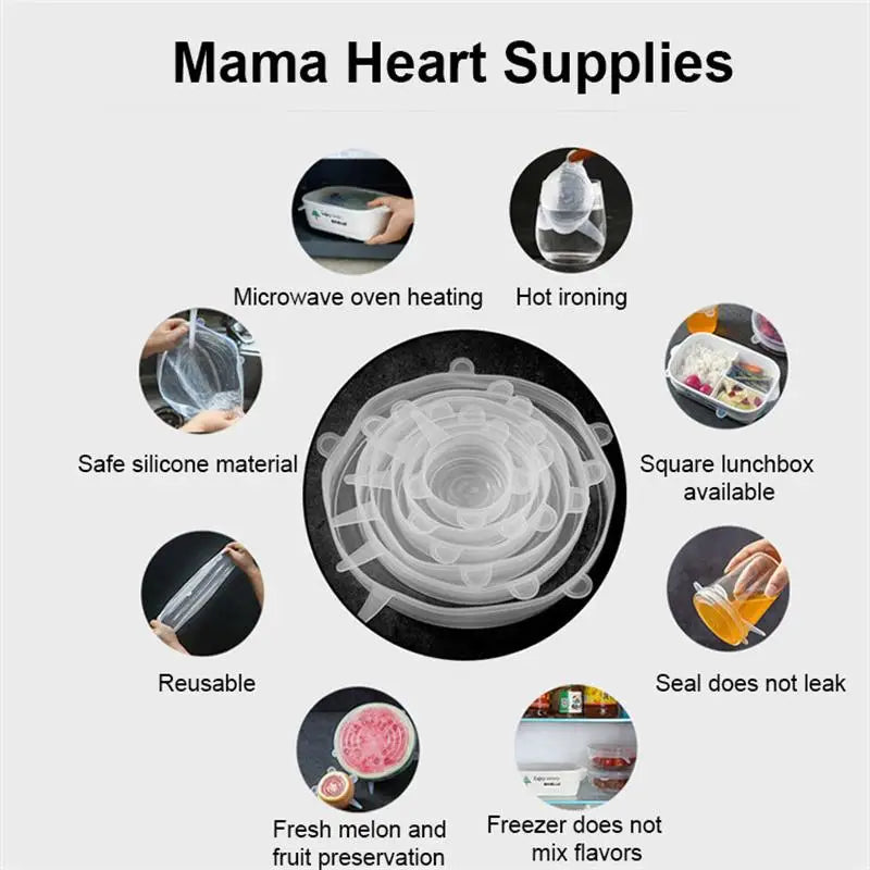 The Silicone Stretch Fresh-Keeping Cover Set offers a versatile and durable solution for preserving food freshness. Made from high-quality, flexible silicone, these covers stretch to securely fit various container sizes and shapes, creating an airtight seal. They help reduce waste by extending the life of leftovers and preventing spills. Easy to clean and reusable, this set is a practical and eco-friendly addition to any kitchen, ensuring your food stays fresh longer with minimal effort.