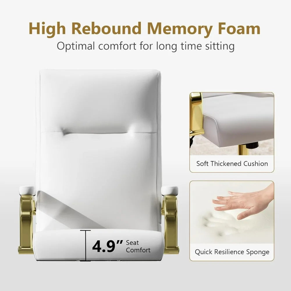Experience premium comfort and professional elegance with the White Gold Executive Office Chair. Crafted with durable materials and a sleek white and gold finish, it offers ergonomic support ideal for long work hours. Its adjustable features enhance posture while providing a stylish centerpiece to any executive office setting. Designed for both functionality and sophistication, this chair supports productivity with refined comfort.